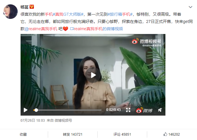 近日,楊冪、馬伯騫、傅菁等明星代言了一款“旅行箱手機”——real me真我GT大師探索版。