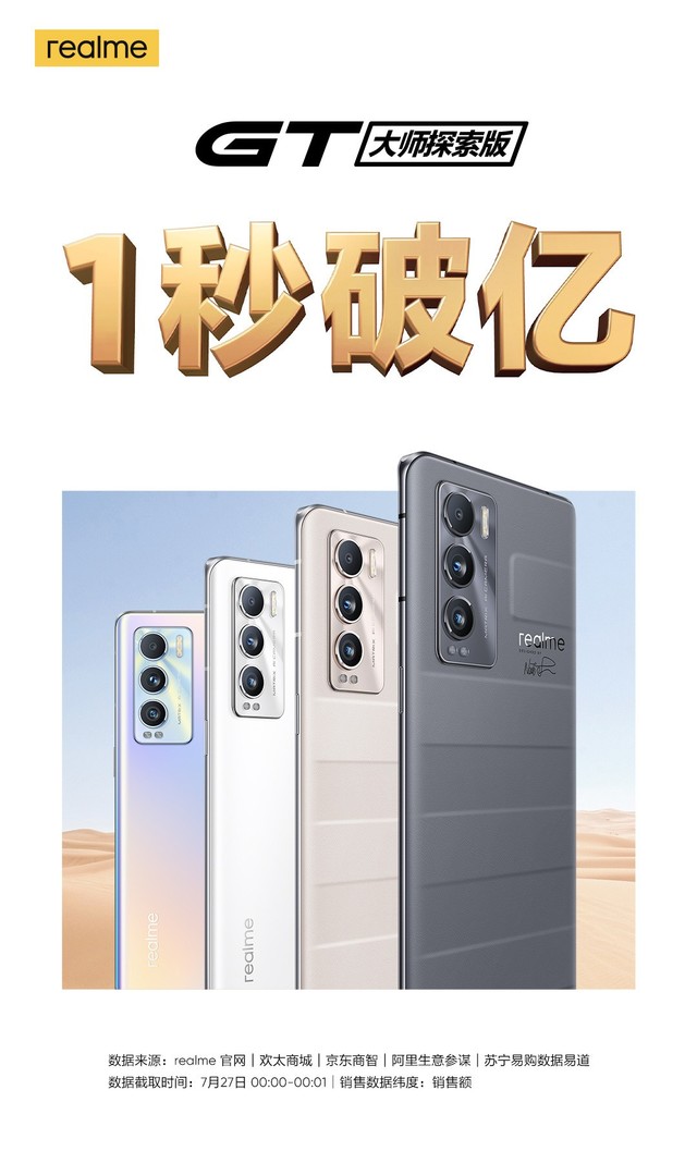 7月27日首銷,僅1秒鐘銷售額就突破了1億元,而且獲得了當天銷量和銷售額雙冠軍,為什么真我GT大師探索版這么熱銷呢?