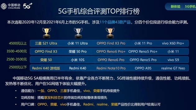 中國移動通信依據通訊工作能力、功能損耗續航力、客戶用戶評價、發燙操縱、照相整體實力等要素對智能手機的綜合能力開展測評,在其中一加、OPPO、三星手機的通訊整體實力最好、聯發科芯片手機上的能耗操縱最好、OPPO、vivo、榮譽的消費者用戶評價最好。詳盡型號的講解大家就放到下面的分項目測評中。