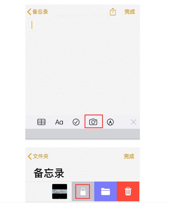 第三種方式便是在iPhone內置的記事本運用中,圖片上傳儲存到記事本:點一下電腦鍵盤上面的相機圖標,隨后挑選“相片圖片庫”,提交必須掩藏的相片,結束以后,在記事本目錄中,往左邊滾動必須掩藏的記事本,點一下小鎖標示來設置登陸密碼給記事本鎖上就可以。