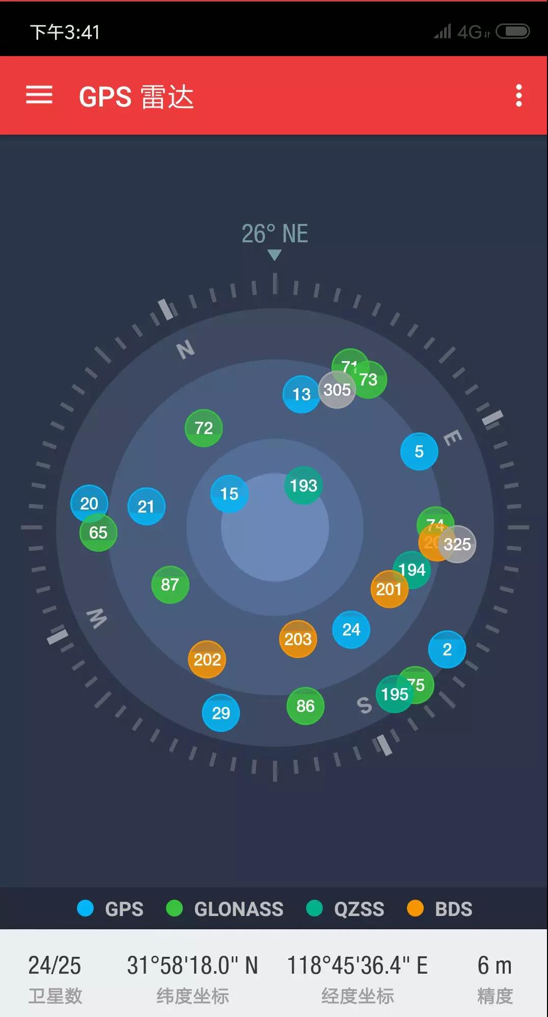 小提示:大家如果有興趣的話,可以安裝類似“GPS雷達”這樣的APP,隨時查看自己的手機現在能搜到哪幾顆定位衛星: